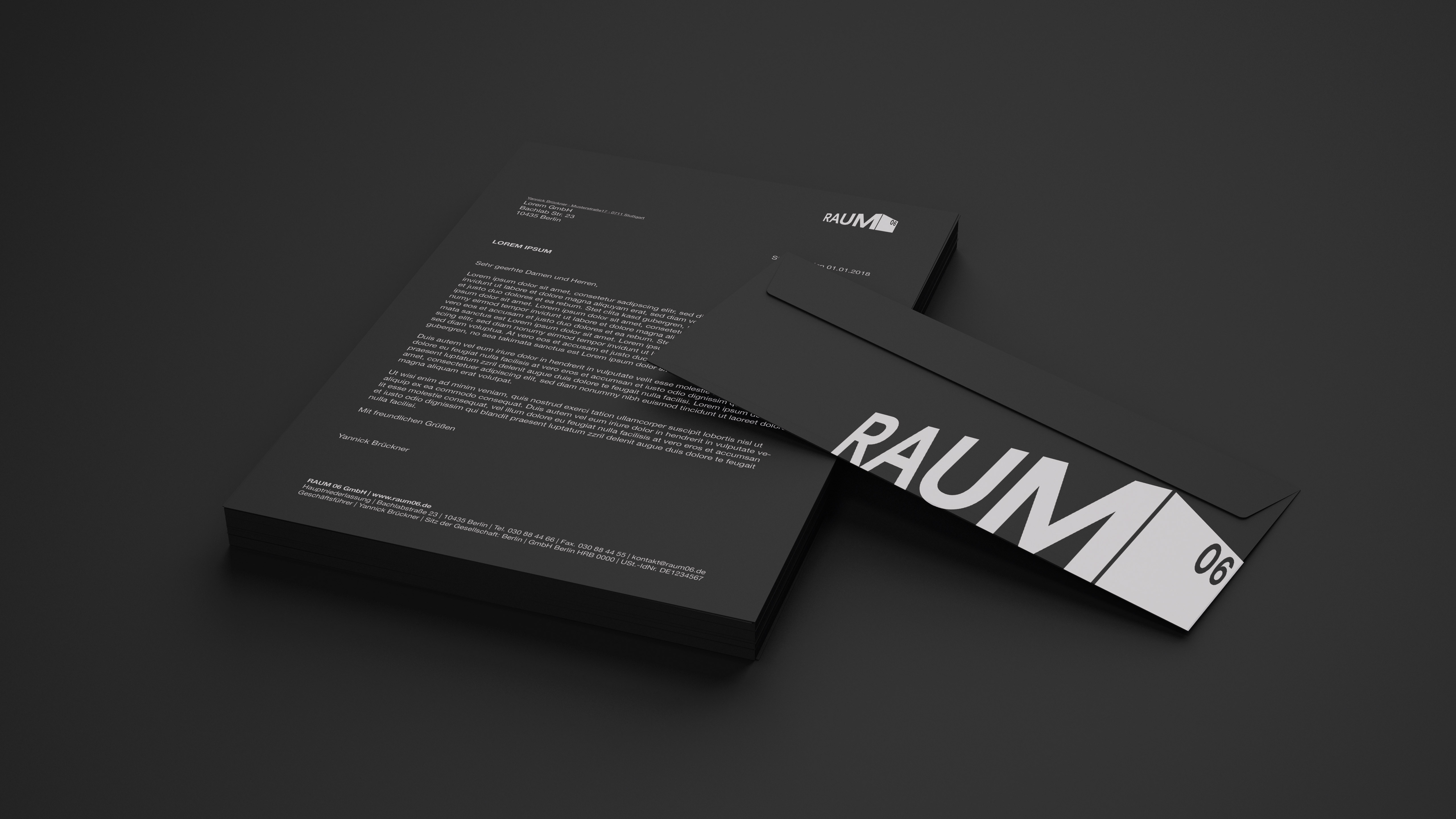 The final brand identity gives Raum 06 a strong, architectural presence with a clean and timeless aesthetic. The spatial logo, the bold black-and-white system, and the carefully crafted print materials create a cohesive look that communicates professionalism, clarity, and modern design thinking.
