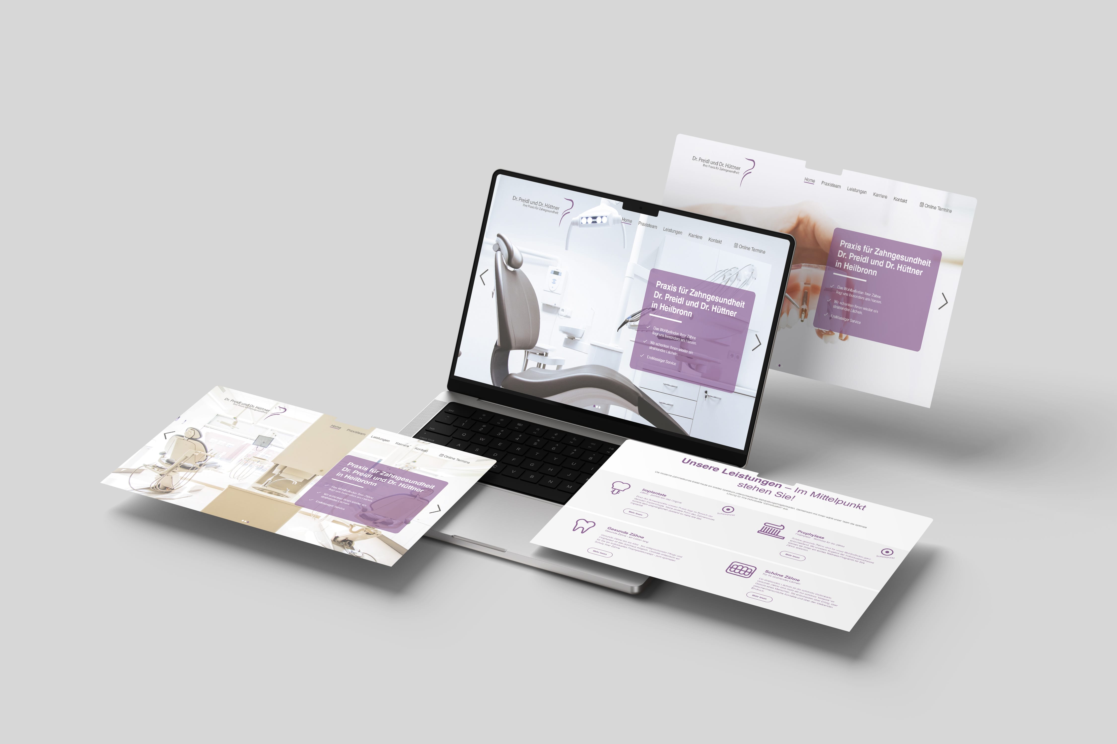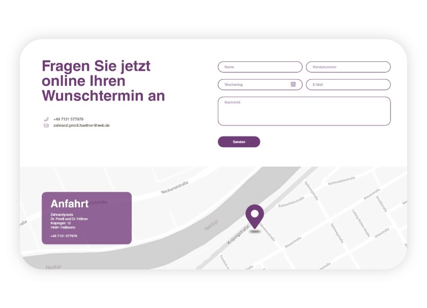 This project involved creating a modern web design concept for a dental practice in Heilbronn. The previous website was outdated, visually cluttered, and not aligned with the practice’s professional standard.The goal was to develop a cleaner, more approachable and user-friendly online presence that reflects trust, hygiene, and high-quality dental care — essential values for patients choosing a dentist.